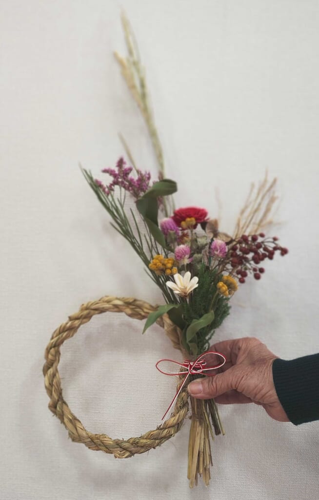 ロスフラワーをアップサイクルしたドライフラワーなどで装飾し華やかに仕上げます。
