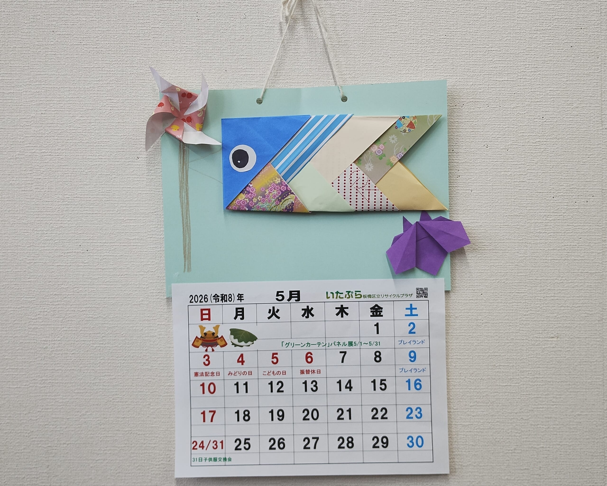 5月カレンダーと、新聞紙でエコバックを作るよ!